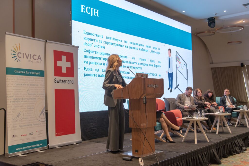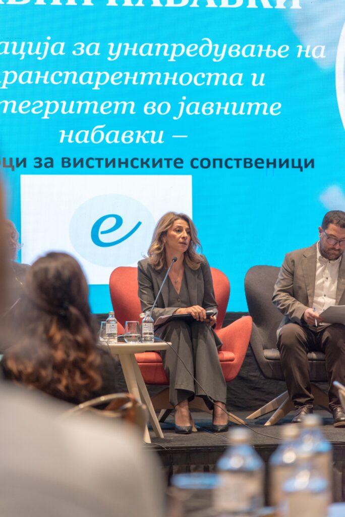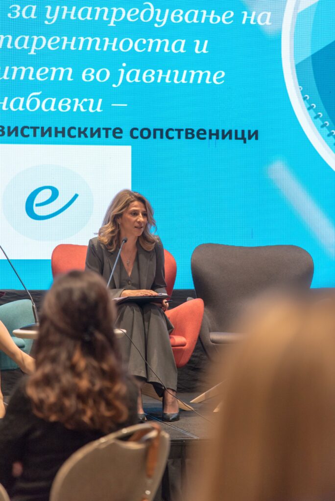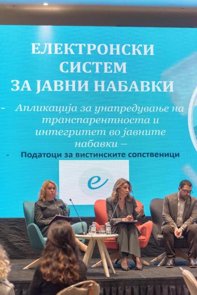 На панел-дискусијата учествуваше и директорката на Бирото за јавни набавки, д-р Маре Богева Мицовска, која говореше за улогата на јавните набавки во унапредувањето на транспарентноста, со посебен акцент на објавувањето на податоците за вистинските сопственици на економските оператори кои склучуваат договори за јавни набавки преку Електронскиот систем за јавни набавки, како дел од заложбите преземени во рамки на Партнерството за отворена власт.